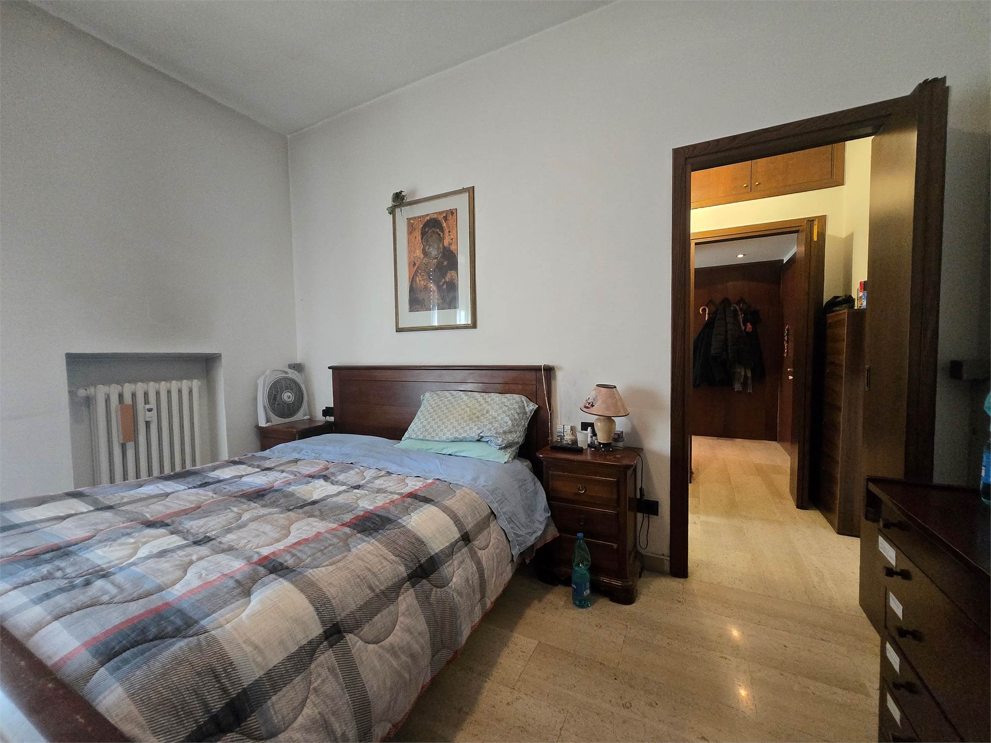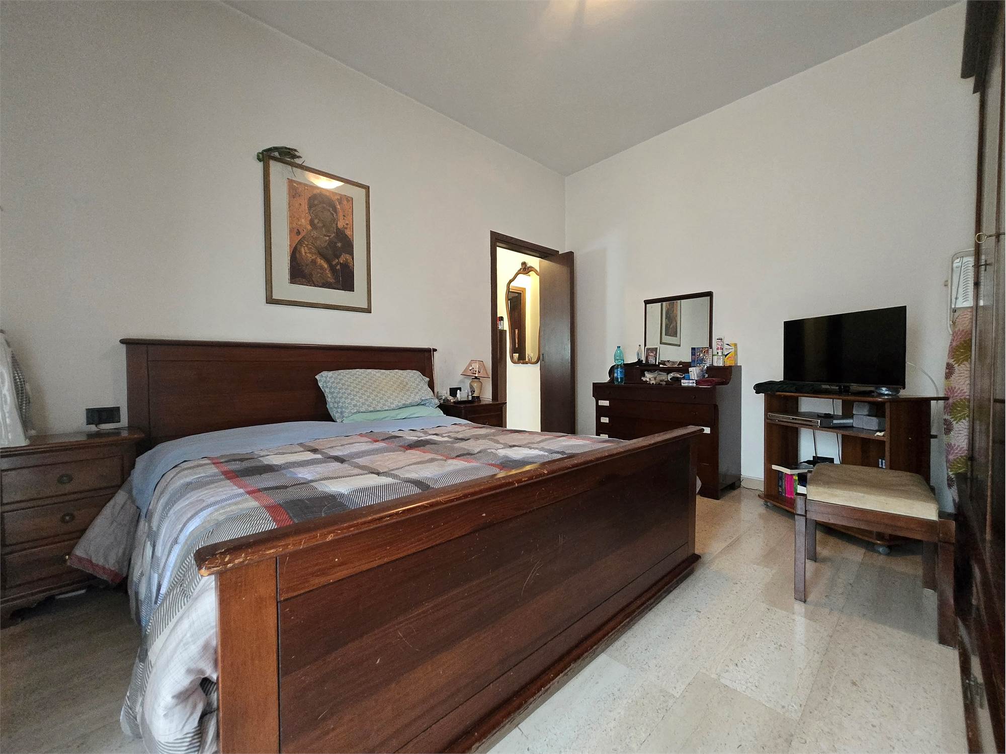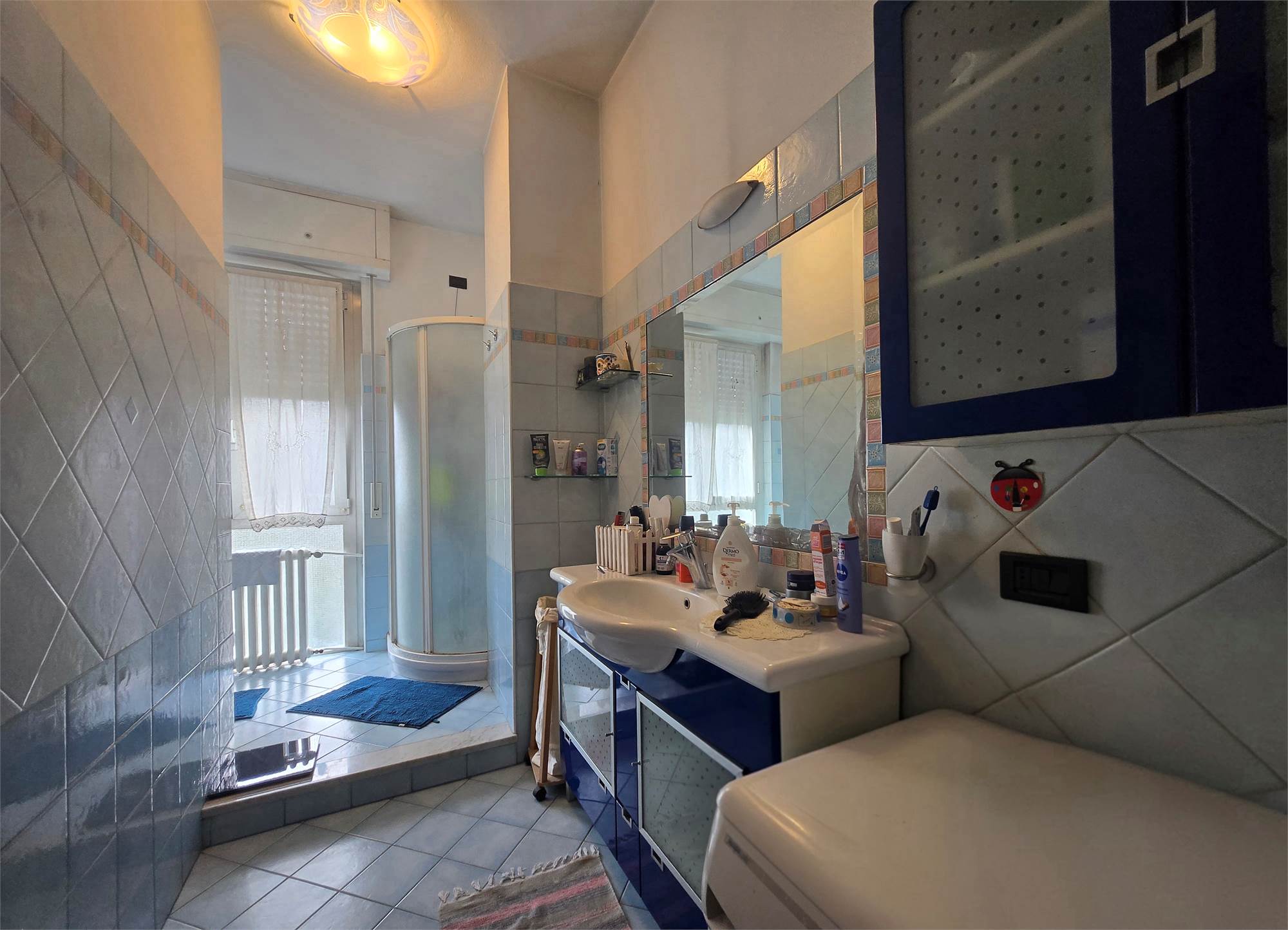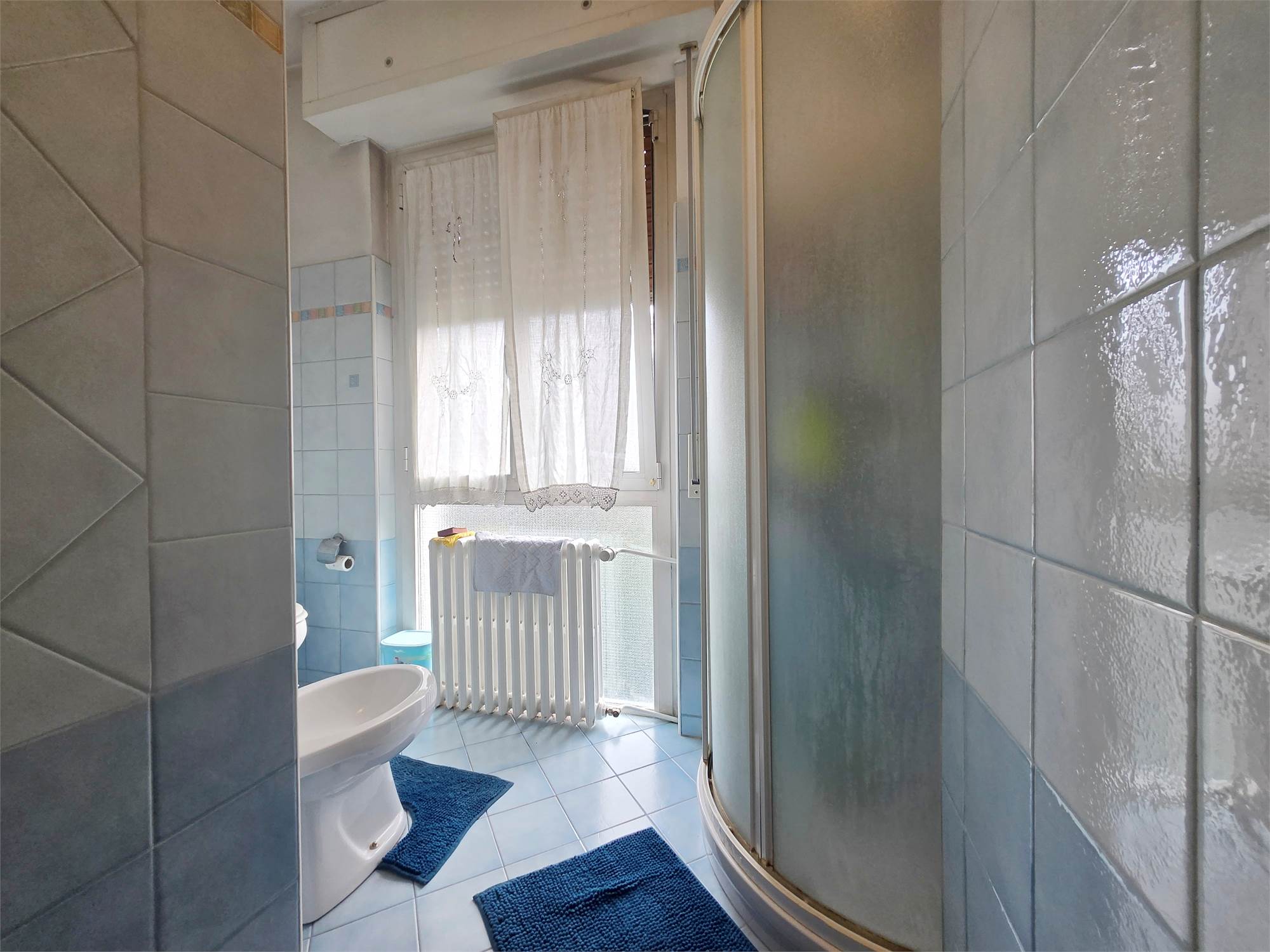 La cucina è abitabile, spaziosa e separata dal soggiorno. La zona notte è composta da una camera matrimoniale di generose dimensioni, con accesso diretto al balcone dotato di inferiata. Il bagno, disposto in lunghezza, è completo di doccia.