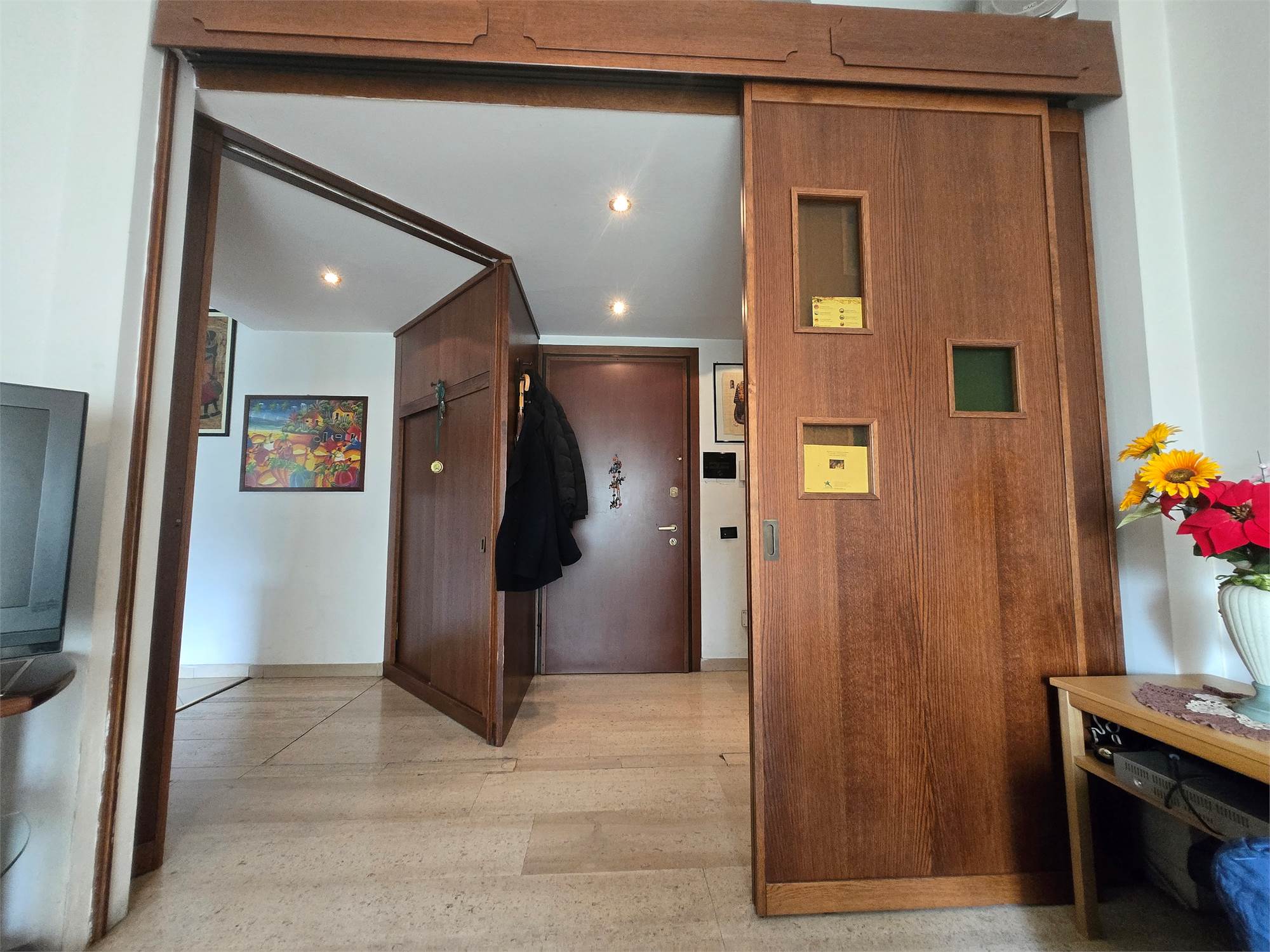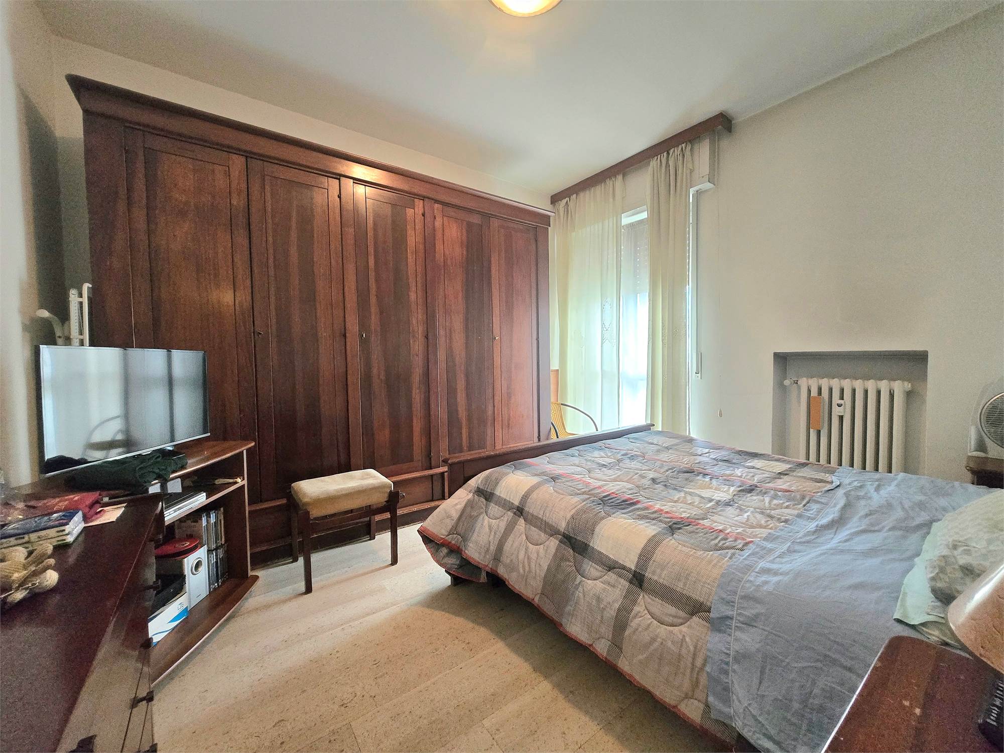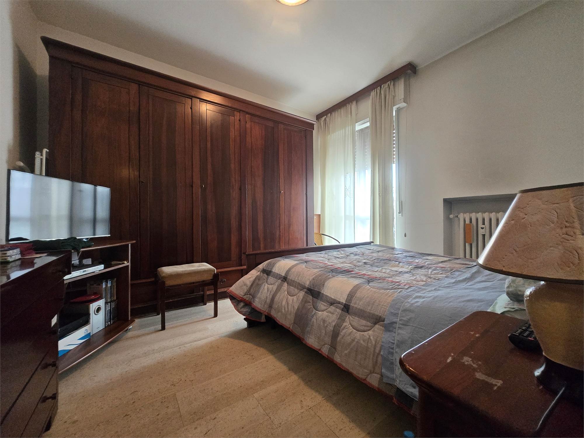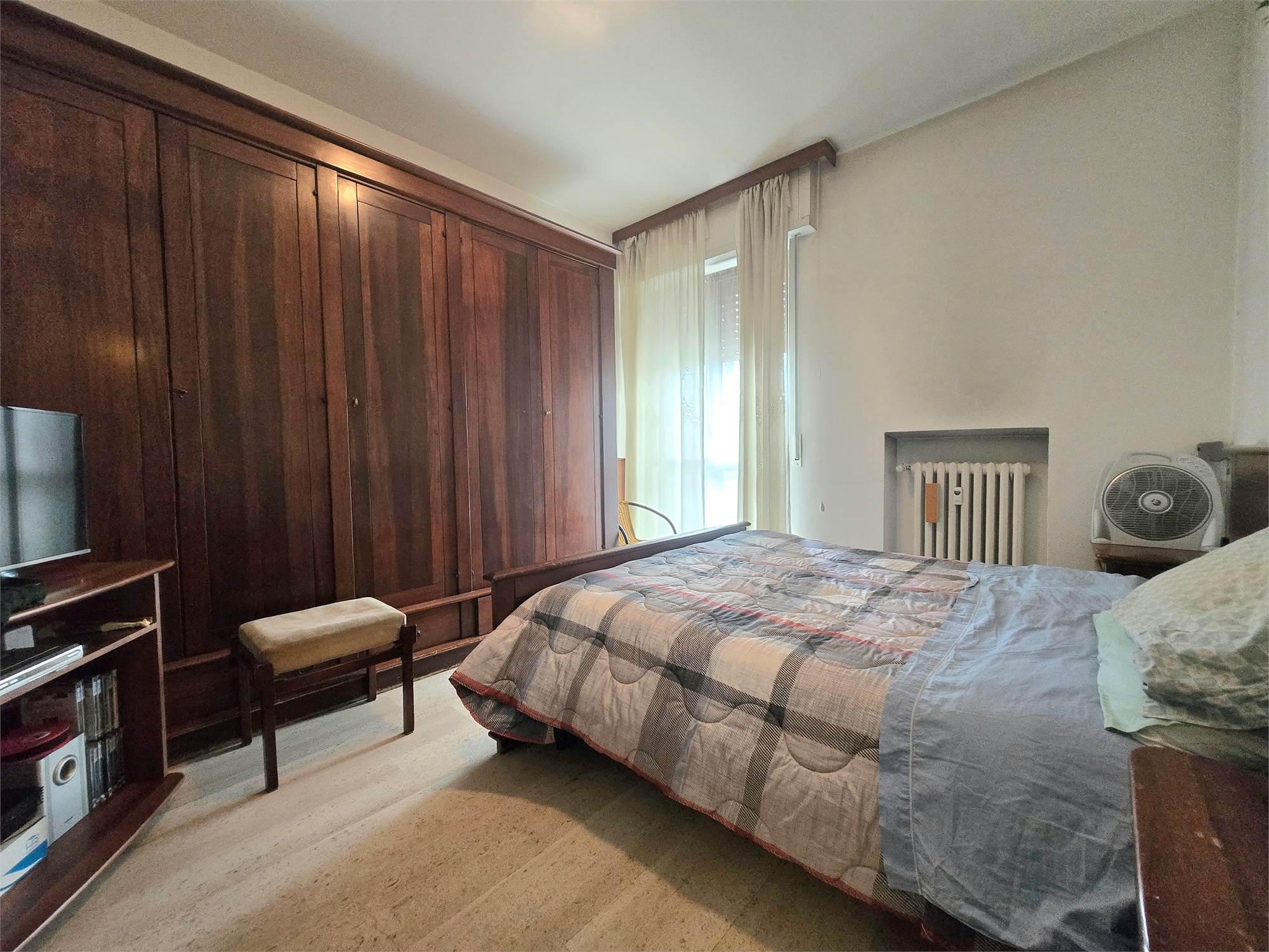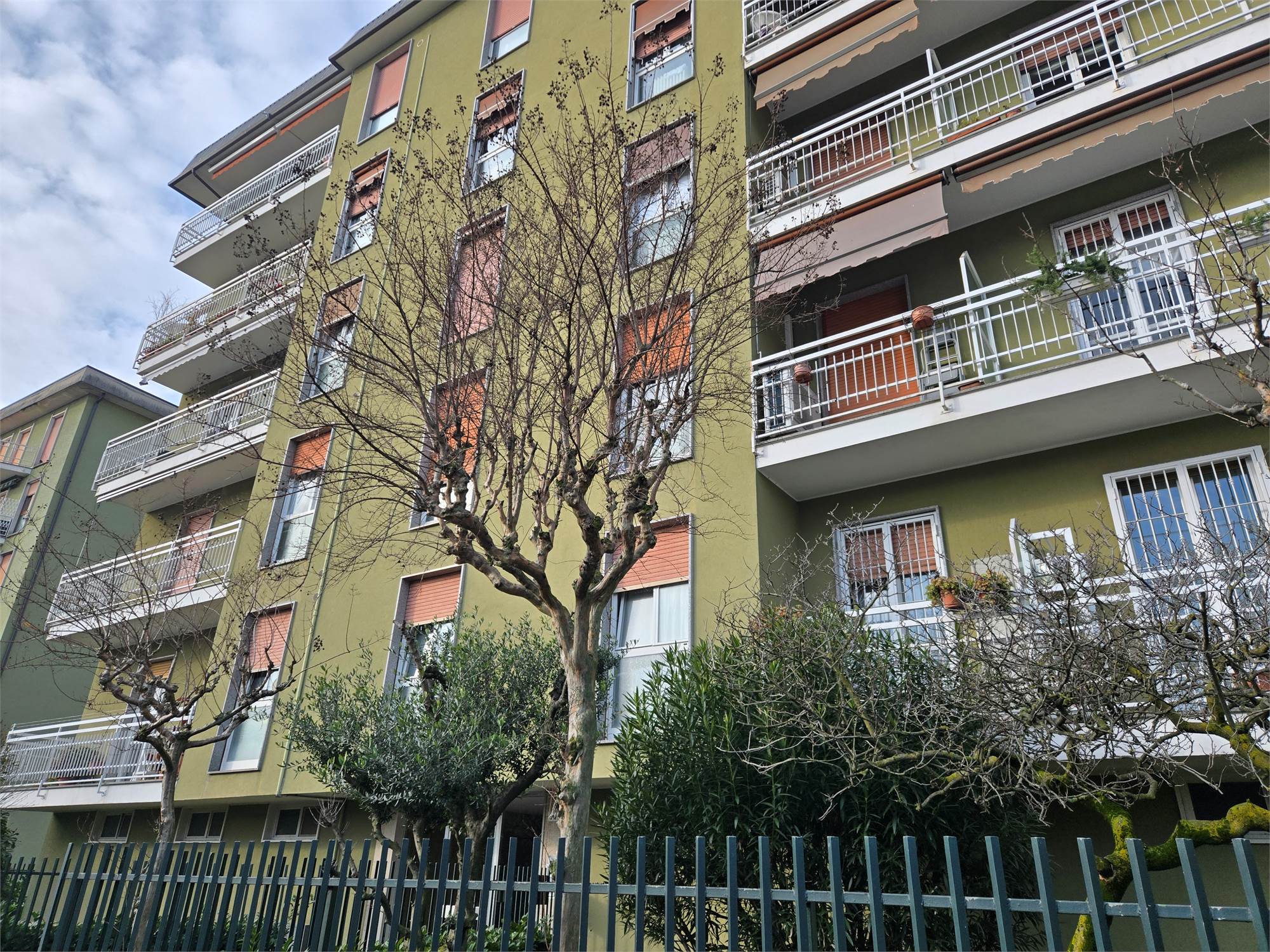 La cucina è abitabile, spaziosa e separata dal soggiorno. La zona notte è composta da una camera matrimoniale di generose dimensioni, con accesso diretto al balcone dotato di inferiata. Il bagno, disposto in lunghezza, è completo di doccia.